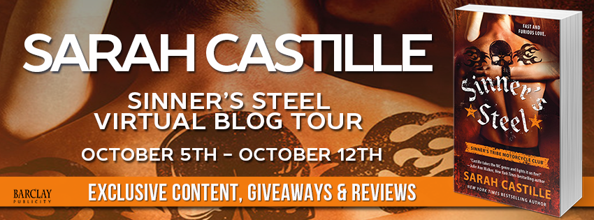 He’s hell on wheels and she’s the one who got away. Sinner’s Steel, the third novel in the Sinner’s Motorcycle Club series is a vivid and powerful MC romance from Sarah Castille. Fans of Joanna Wylde and Kristen Ashley’s biker romances will love this intense, rough and raw addition to the Sinner’s Motorcycle Club series.