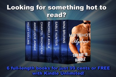 Because you just can’t get enough! Hotshot Alphas are men who know what they want and get what they want. Will it be you? 6 full-length heroes, oops, I mean, romances with brash and exciting lovers from NY Times, USA Today, and International bestselling authors. Get your cowboys, chefs, special operatives, and sexy bad boys today. LIMITED TIME OFFER.