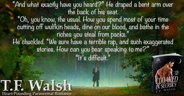 Well Done T. F. Walsh! Cloaked in Secrecy is HOT HOT HOT !!! The description of each characters are amazing.