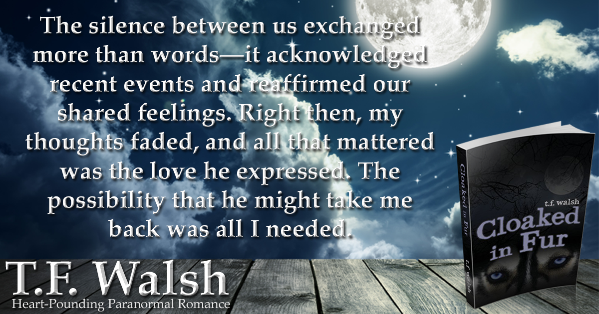 I am going to be keeping my eye on the author: T.F. Walsh. I love her style and look forward to reading more. I would also love to see this book in print.