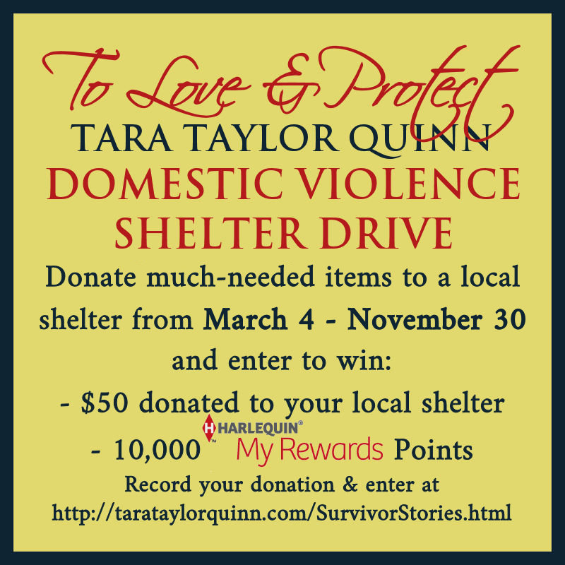 Make sure you check out Tara’s visit to Harlequin Junkie on March 8th, the giveaway of His First Choice on Goodreads, as well as the Domestic Violence Shelter Drive and the giveaways below…