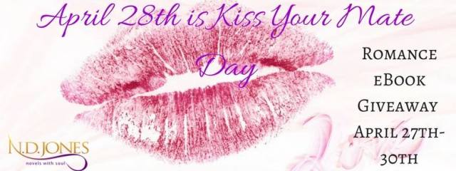 Welcome to April 28th is Kiss Your Mate Day eBook Giveaway Event. Believe it or not, Kiss Your Mate Day is an actual holiday. So pucker up and give that special someone in your life a big fat kiss of love. To recognize this romantic day, a group of talented romance authors has come together to celebrate hugs and kisses, from romantic love to paranormal love to contemporary love. It’s all here, a weekend of free eBooks to last you through the spring.