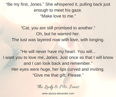 Cat Ashdown is a baroness. Nothing is more important than protecting five hundred years of heritage. She knows every detail of every estate that commands the largest income in Britain— yet her father placed her inheritance in trust to her uncle who is forcing her to marry a man she has no desire for. The baroness’s battle against law and convention leads her to Jones and results that are surprising … and possibly unwanted.
