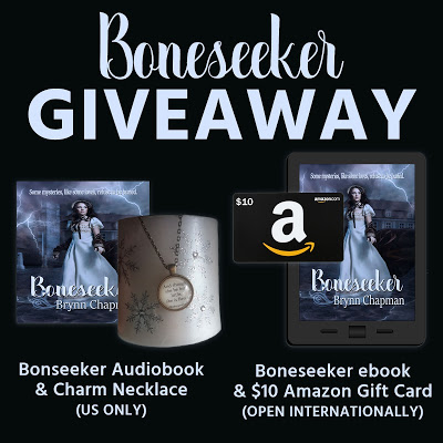 In addition to the giveaway of a kindle book of BONESEEKER, and a 10 dollar amazon gift card—if you forward a copy of a paid ebook to publicity.brynnchapman@gmail.com you will be entered to win a free audiobook and a related necklace, as well.