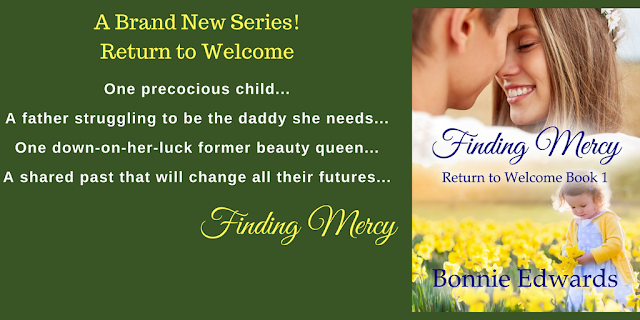 Clay Foster used to be Welcome’s bad boy, but marriage and his daughter Dilly have transformed him into a devoted father. Widowed now and struggling to be the daddy his child needs, Clay fights his sudden and unexpected attraction to Mercy. But, tempted as he is, Clay can’t afford to be taken in by a golden girl. Beautiful, talented women like Mercy always have an exit strategy and when her career beckons, Clay knows she’ll leave him and Dilly flat. His daughter has already lost her mother and he won’t put his little girl’s heart on the line.
