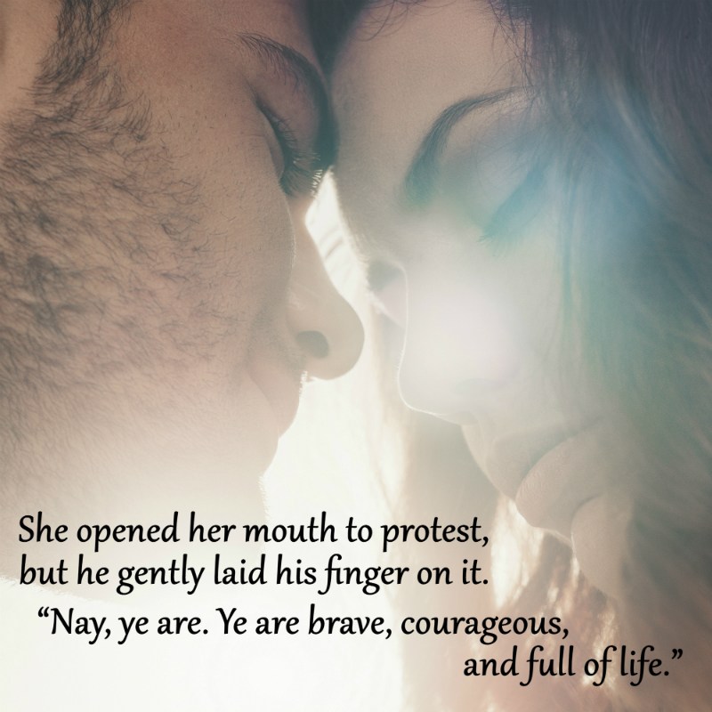 He kissed the corners of her mouth before leaning his forehead against her own.“Ye catch my blood on fire, lass.”