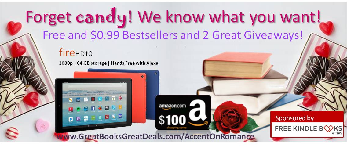 | Go Here to enter Giveaway One and then pop on over to GreatBooksGratDeals and Accent on Romance for Giveaway Two. Winners take home Amazon Gift Cards, a Kindle Fire HD 1080 and print editions of best selling novels. |
