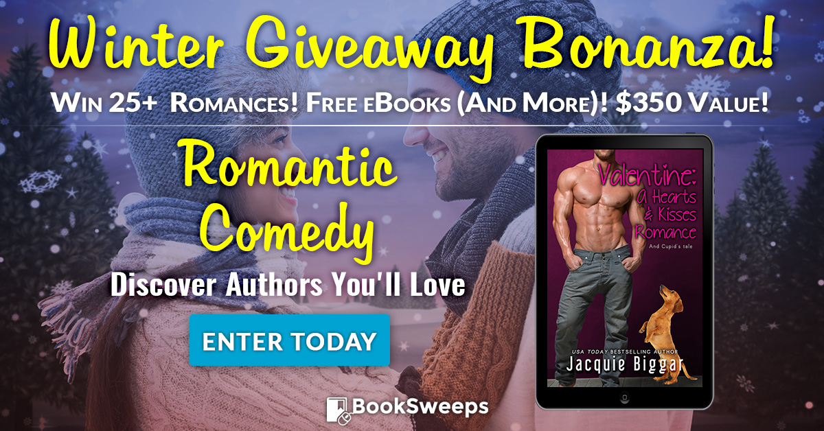 You can win my novel Valentine: A Hearts & Kisses Romance, plus books from authors like Jacquie Biggar, Kirsty McManus, Piper Rayne, and more.