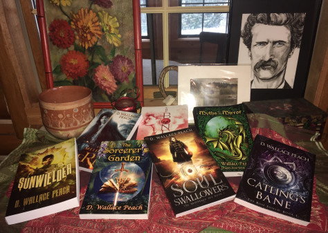Mark Twain looking over a few of my books.