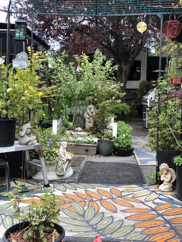 Different textures of gray poking in amongst the color of our spring garden. We have a small RV lot, but make use of every inch!