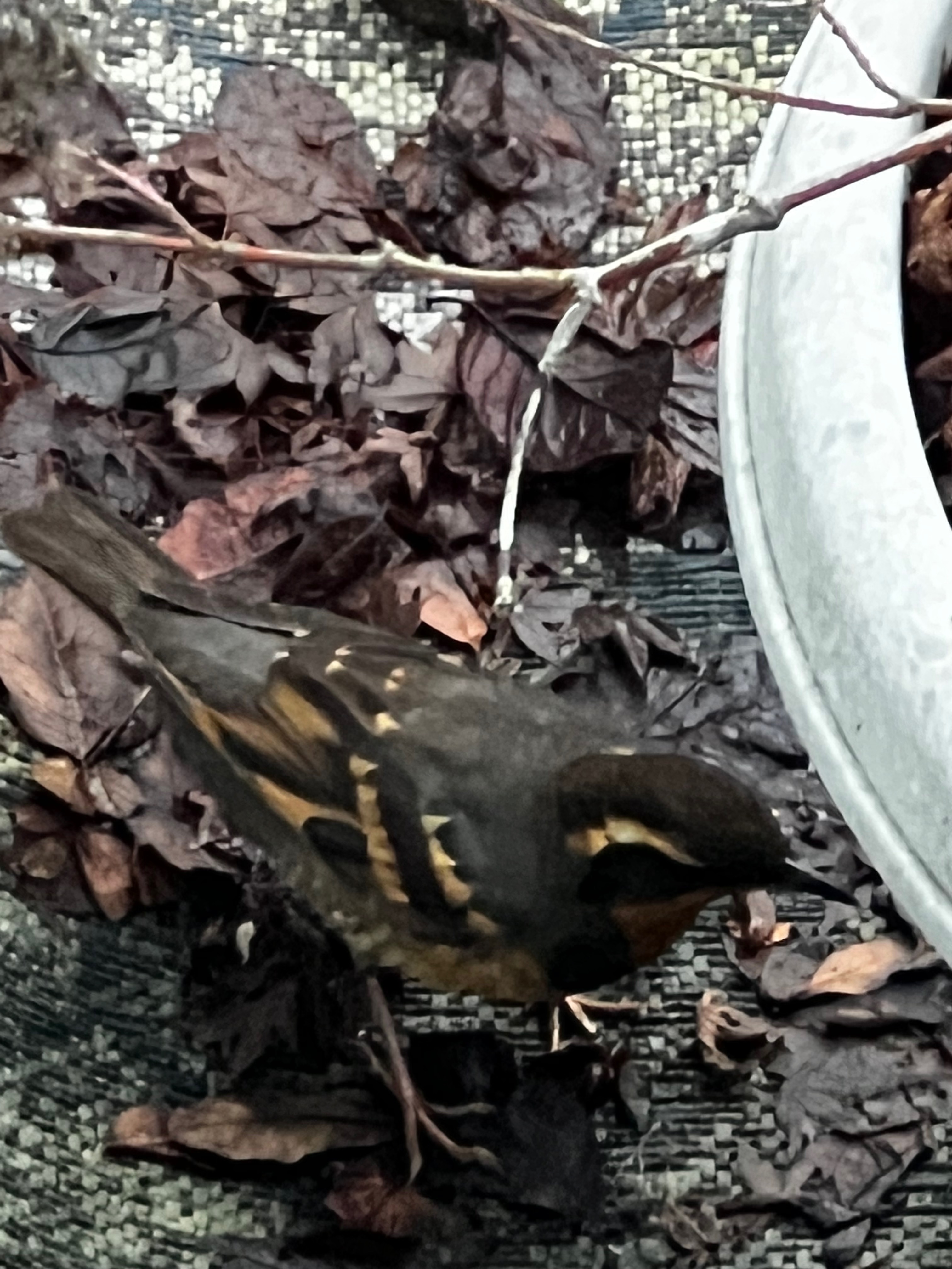 One of the cute visitors we have investigating the winter garden- a thrush.